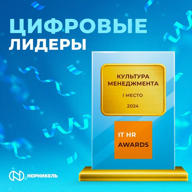 Компания «Норникель» подтвердила своё лидерство в области HR, заняв первое место в категории «Культура менеджмента» на церемонии IT HR AWARDS